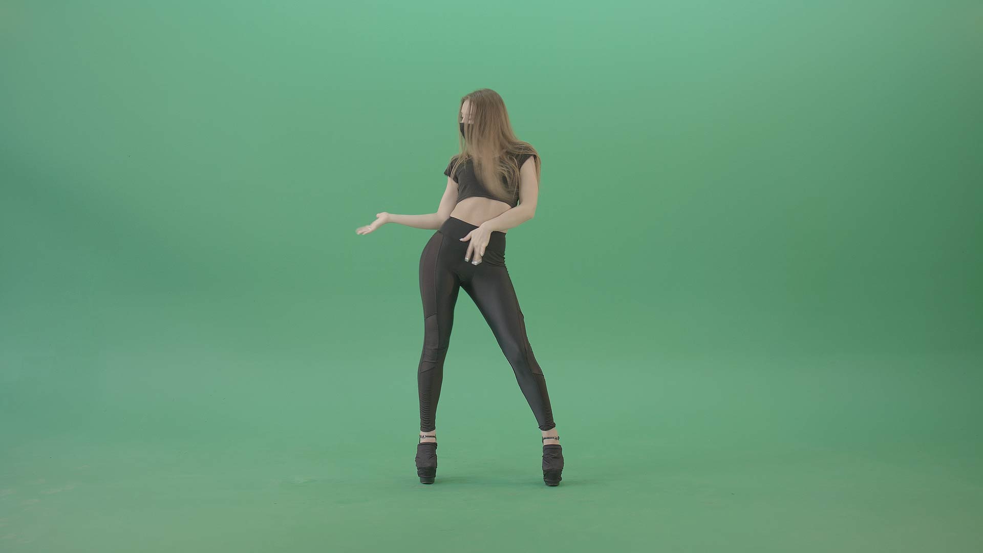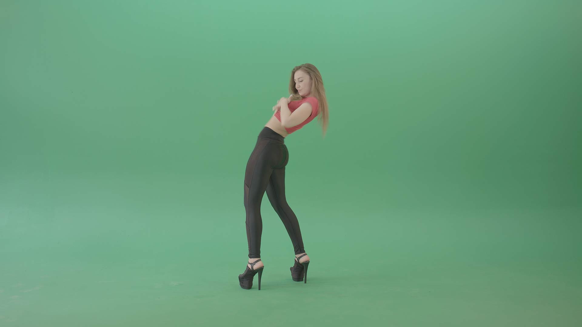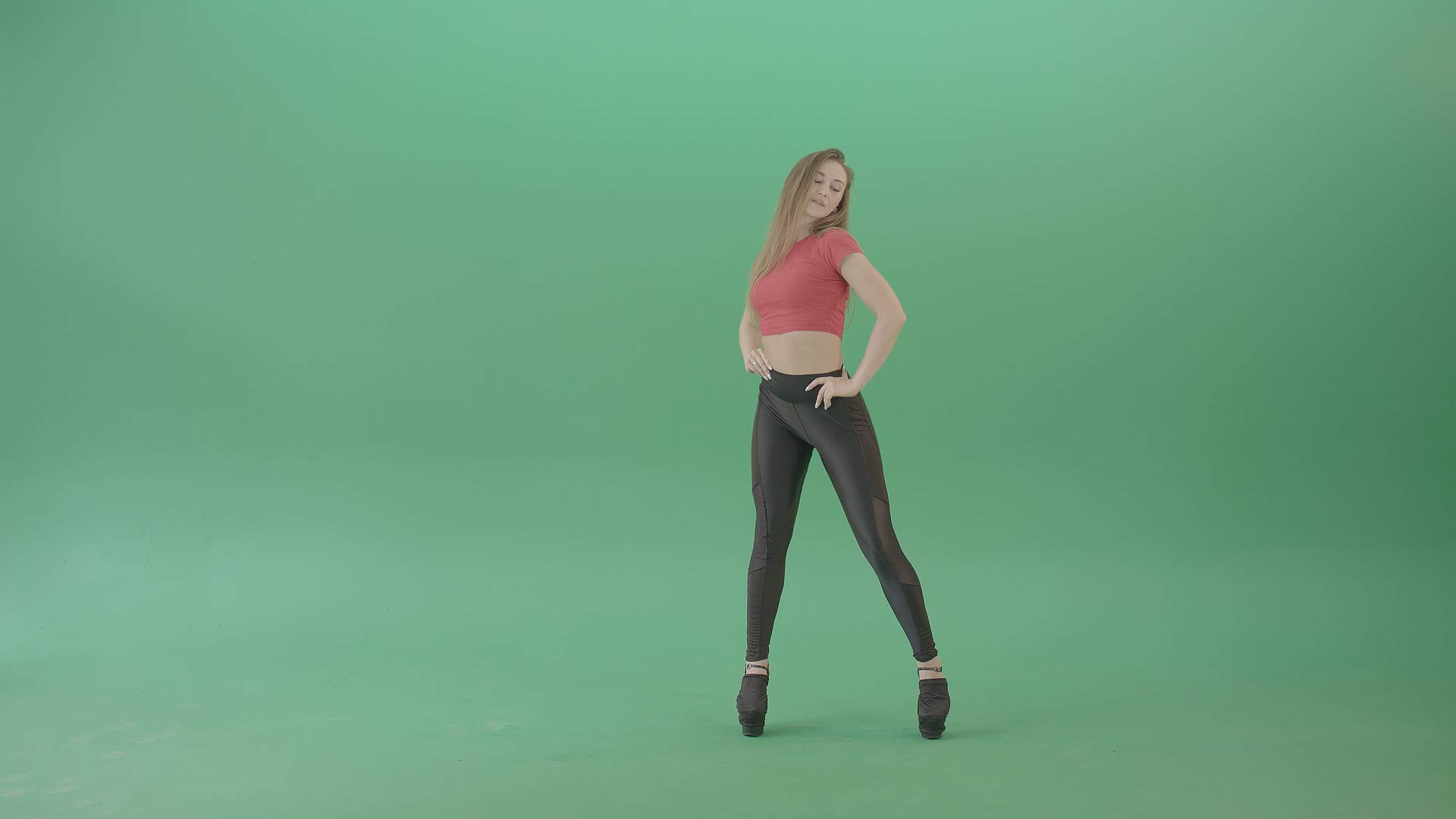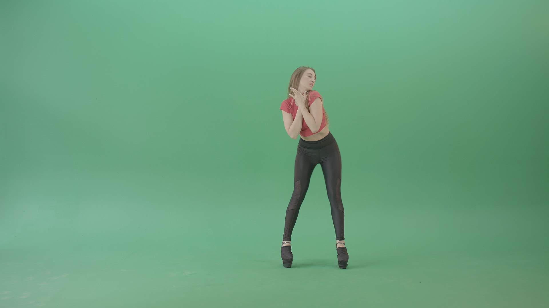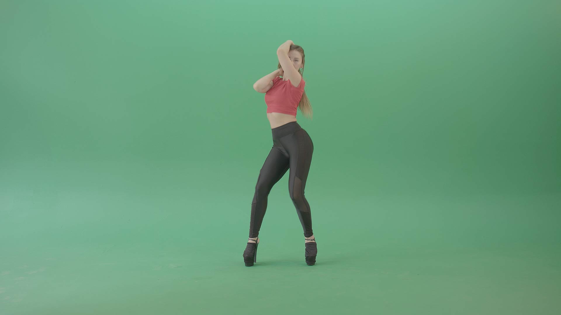 They both dance sensually and rhythmically. Moves that are sexy, erotic and like a strip show performance. Find a collection of clips which have the girls dressed in full outfits and body-hugging clothes. A black outfit with platform boots. A red top and black bottoms with black platform boots. Find them dancing and moving in various poses, showing off their bodies while moving rhythmically. Professional quality footage and professional dancers, ready for use in any production. Live events, music videos or any other videos.