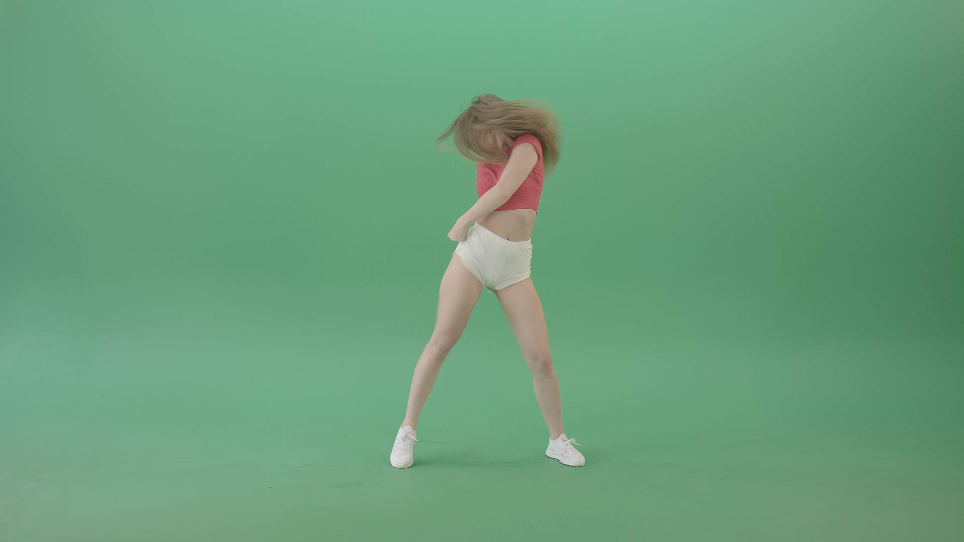 Twerking dance performance by young girl isolated on green screen